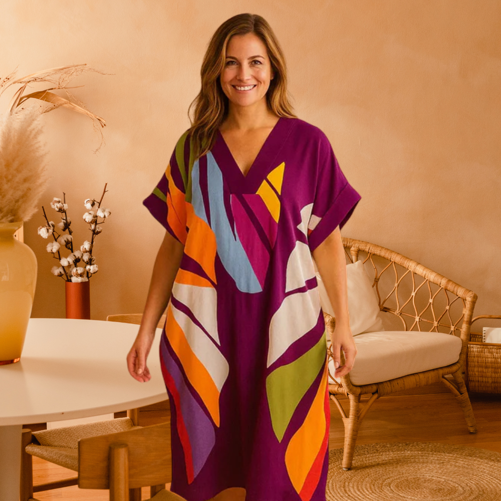 Let your style speak volumes with the Emelia - Abstract Print Dress, a vibrant canvas of fearless creativity. With its flowing silhouette and striking color play, this dress is made for the woman who loves to stand out without trying too hard.